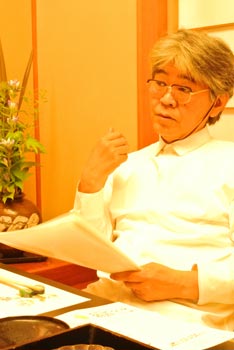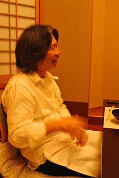 今回、来生たかおが選んだお店は、「今半」。和のしつらえとBGMも和やかに、コース料理を頂きながらの対談です。